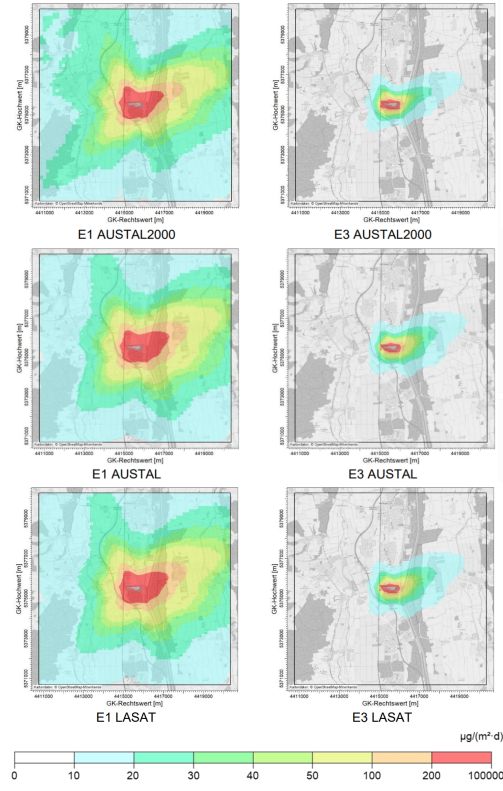 Am Beispiel der Fa. Lech-Stahlwerke in Meitingen, in deren Umfeld seit 2007 ein umfangreiches Depositionsmessnetz für Staub und daran gebundene Metalle betrieben wird, erfolgte ein Vergleich von Ausbreitungsrechnungen nach alter und neuer TA Luft (ohne und mit der zwischenzeitlich zusätzlich implementierten Tropfenverdriftung) mit den Messdaten. Auf dieser Grundlage wird diskutiert, ob die Modellergebnisse nach neuer Technischer Anleitung zur Reinhaltung der Luft (TA Luft) wirklich „so daneben“ liegen, wie von verschiedenen Seiten behauptet wird, sowie detailliert auf innerhalb und außerhalb des Modellsystems liegende Gründe für die Diskrepanzen eingegangen. Es zeigt sich, dass für das ausgesprochen konservative „typische Genehmigungsszenario“ mit den Modellsystemen der neuen TA Luft (ohne (AUSTAL3.1) und mit Verdriftung (LASAT3.5beta, AUSTAL 3.2) im Vergleich zu den Depositionsmessdaten noch stärker überbewertende und damit realitätsfernere Ergebnisse erzielt werden als bereits nach der TA Luft 2002 (AUSTAL2000). Unter Berücksichtigung von realitätsnah modellierten Emissionsdaten ergeben sich hingegen mit dem Modellsystem der neuen TA Luft, insbesondere bei Berücksichtigung der Tropfenverdriftung, insgesamt realistischere Ergebnisse als nach TA Luft 2002. Die Transmissionsprozesse und damit sowohl die räumliche Verteilung als auch die Beträge der Immissionen werden somit realistischer beschrieben als bisher. Dem gegenüber steht jedoch eine im Zuge des Geltungszeitraums der TA Luft 2002 etablierte Genehmigungs- und Begutachtungspraxis, die die Emissionen so stark überbewertet, dass mit dem realistischeren Modellsystem der neuen TA Luft gerade für größere Anlagen (wie das vorliegend untersuchte Stahlwerk) für die Genehmigungsfähigkeit problematische Befunde erzielt werden.