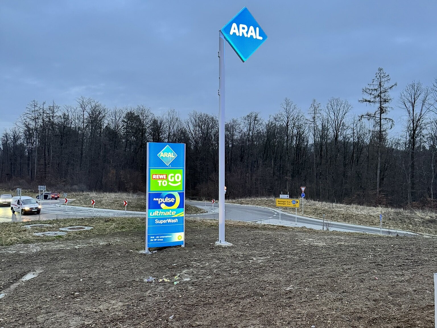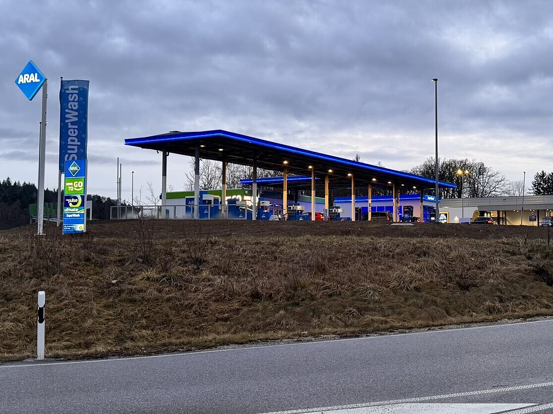 In der Gemeinde Grafenberg entsteht auf der Gewerbefläche GE 3 eine neue ARAL‑Tankstelle. Der Bebauungsplan erlaubt diese Nutzung, stellt jedoch klare Anforderungen an die Beleuchtung, um geschützte Arten wie Hirschkäfer und jagende Fledermäuse am nahen Waldrand nicht zu stören. Da der Wald und bestehende Hirschkäfermeiler nur etwa 20 bis 40 Meter vom Baugrundstück entfernt liegen, müssen alle geplanten Lichtquellen sorgfältig geprüft und so ausgeführt werden, dass keine störende Aufhellung in Richtung Wald erfolgt.