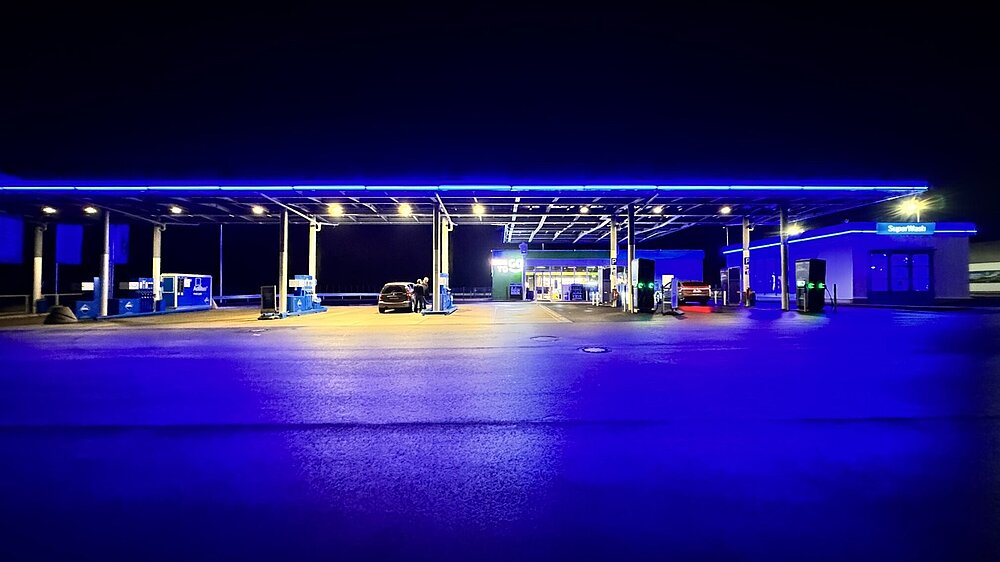 Nach Inbetriebnahme der Tankstelle wurde seitens der Müller-BBM Industry Solutions messtechnisch überprüft, wie viel Licht mit welcher spektralen Zusammensetzung tatsächlich von den bestehenden Beleuchtungsanlagen im Umfeld emittiert wird.