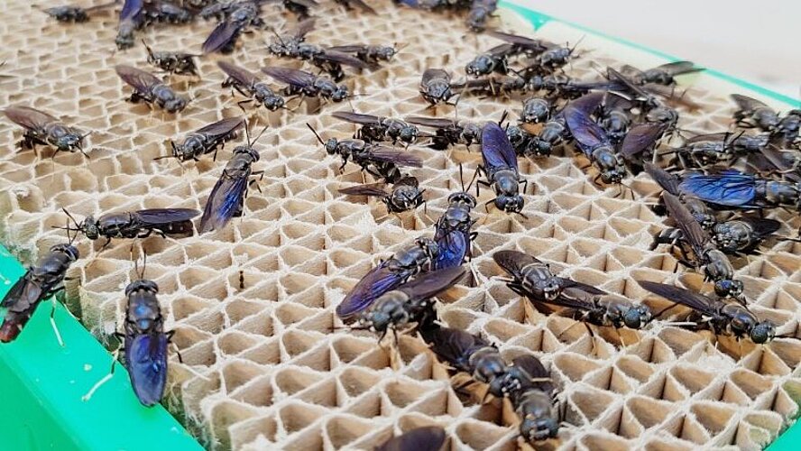 Die Insektenmast gewinnt zunehmend an Bedeutung als nachhaltige Proteinquelle für Tierfutter. Larven – etwa der Schwarzen Soldatenfliege – werden mit regionalen Reststoffen wie Biertreber oder Weizenkleie gefüttert und anschließend in Aquakulturen oder der Schweinemast eingesetzt.