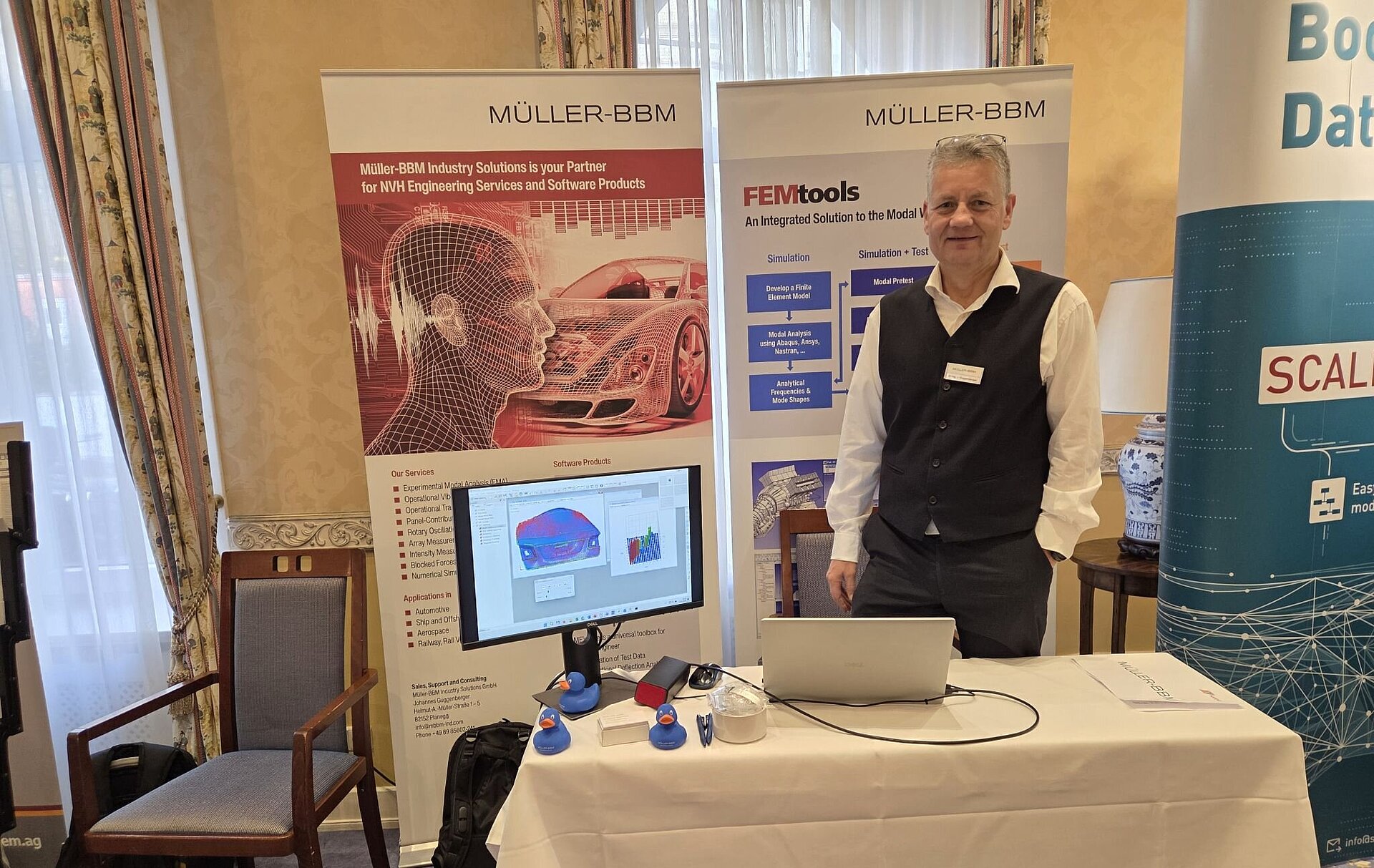 Our colleague Johannes Guggenberger attended the NAFEMS seminar in Wiesbaden and represented Müller-BBM Industry Solutions with our own booth. The focus: our portfolio in NVH Engineering and the software product FEMtools.