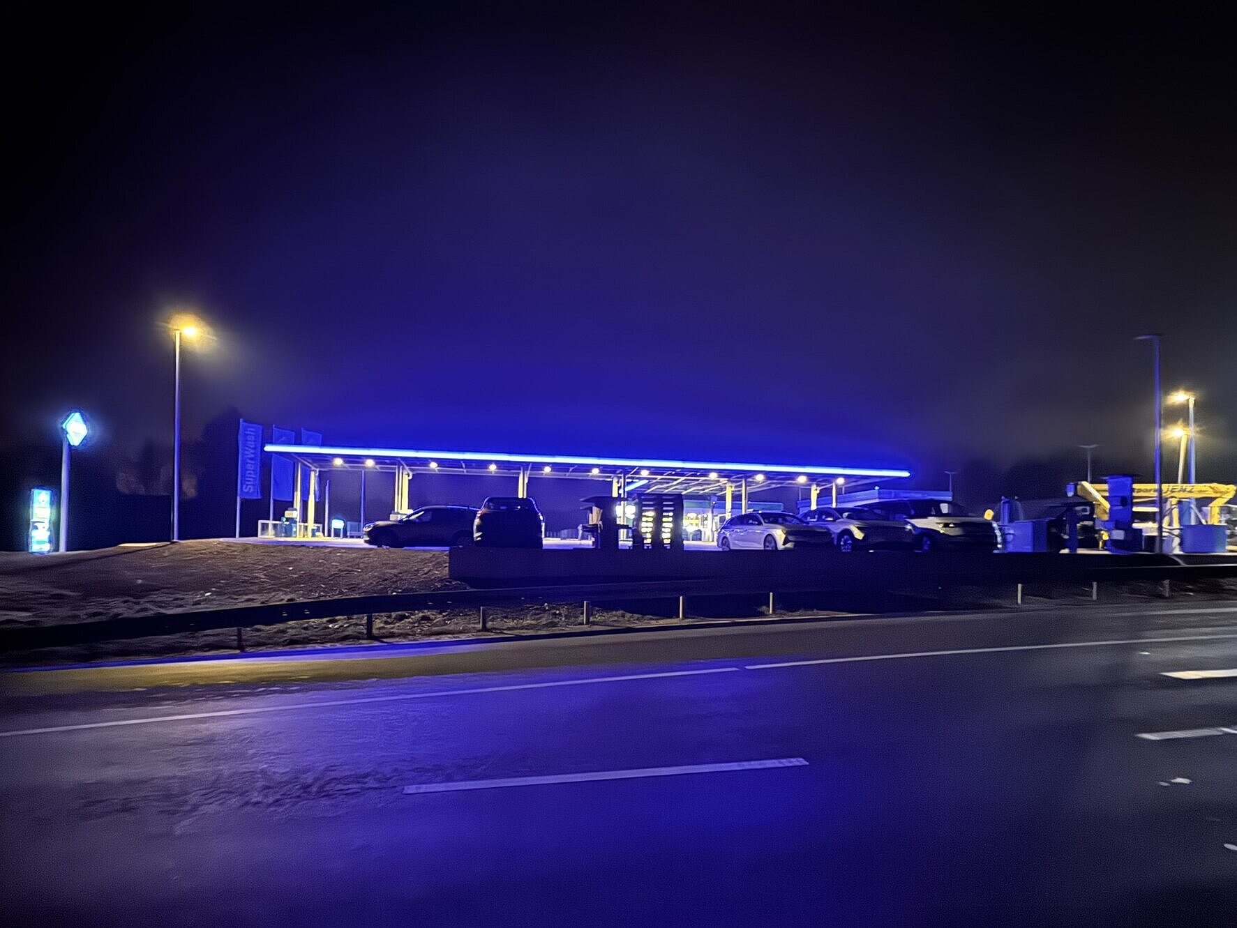 After the service station was put into operation, Müller‑BBM Industry Solutions conducted on‑site measurements to determine how much light – and with which spectral composition – is actually emitted by the installed lighting systems in the surrounding area.